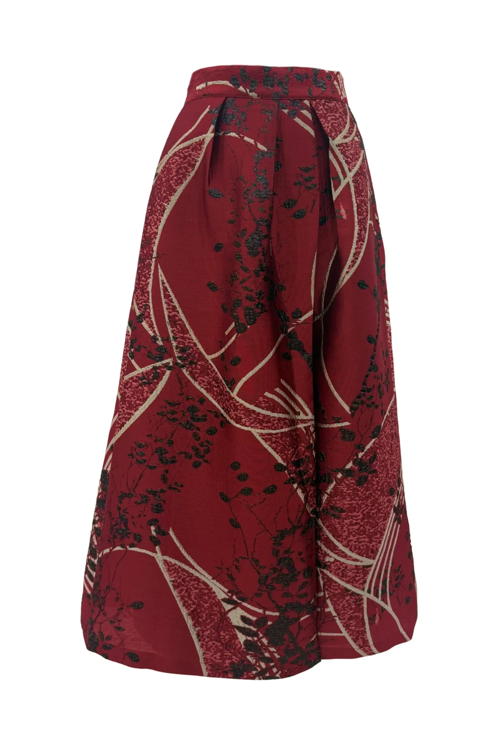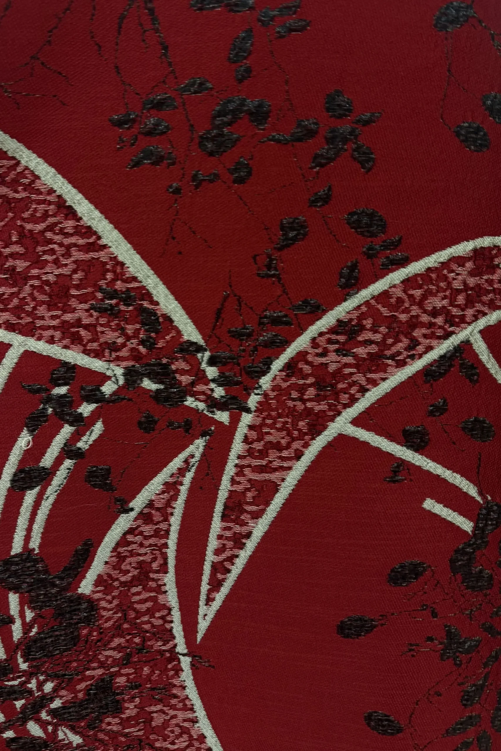 Jakarlı brokarın tok ve hacimli yapısı, formunu koruyan güçlü bir siluet oluşturur.