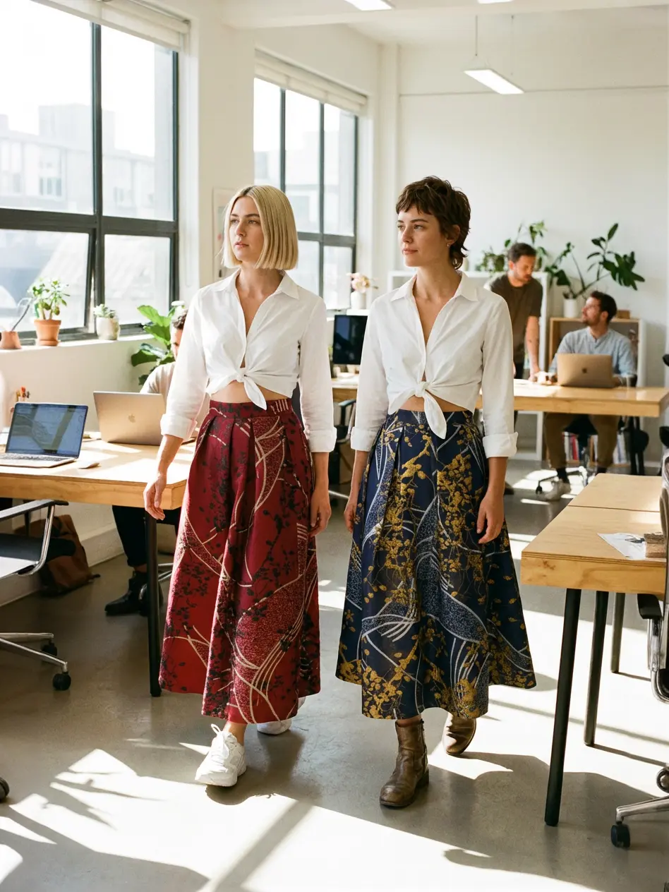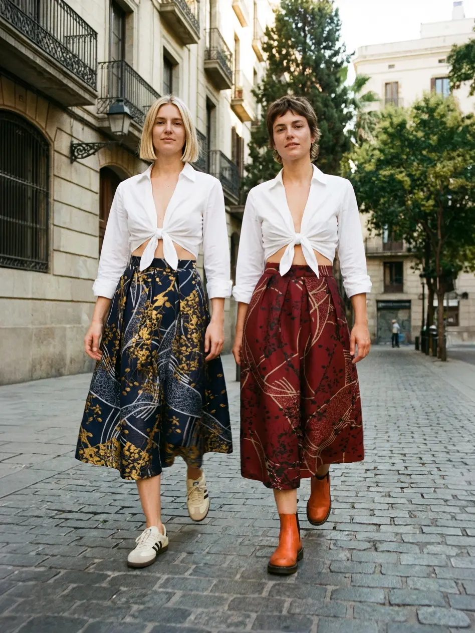 Yırtmaç açıldığında ortaya çıkan iç kat, mini etek görünümü yaratarak parçaya katmanlı ve iddialı bir karakter kazandırır.