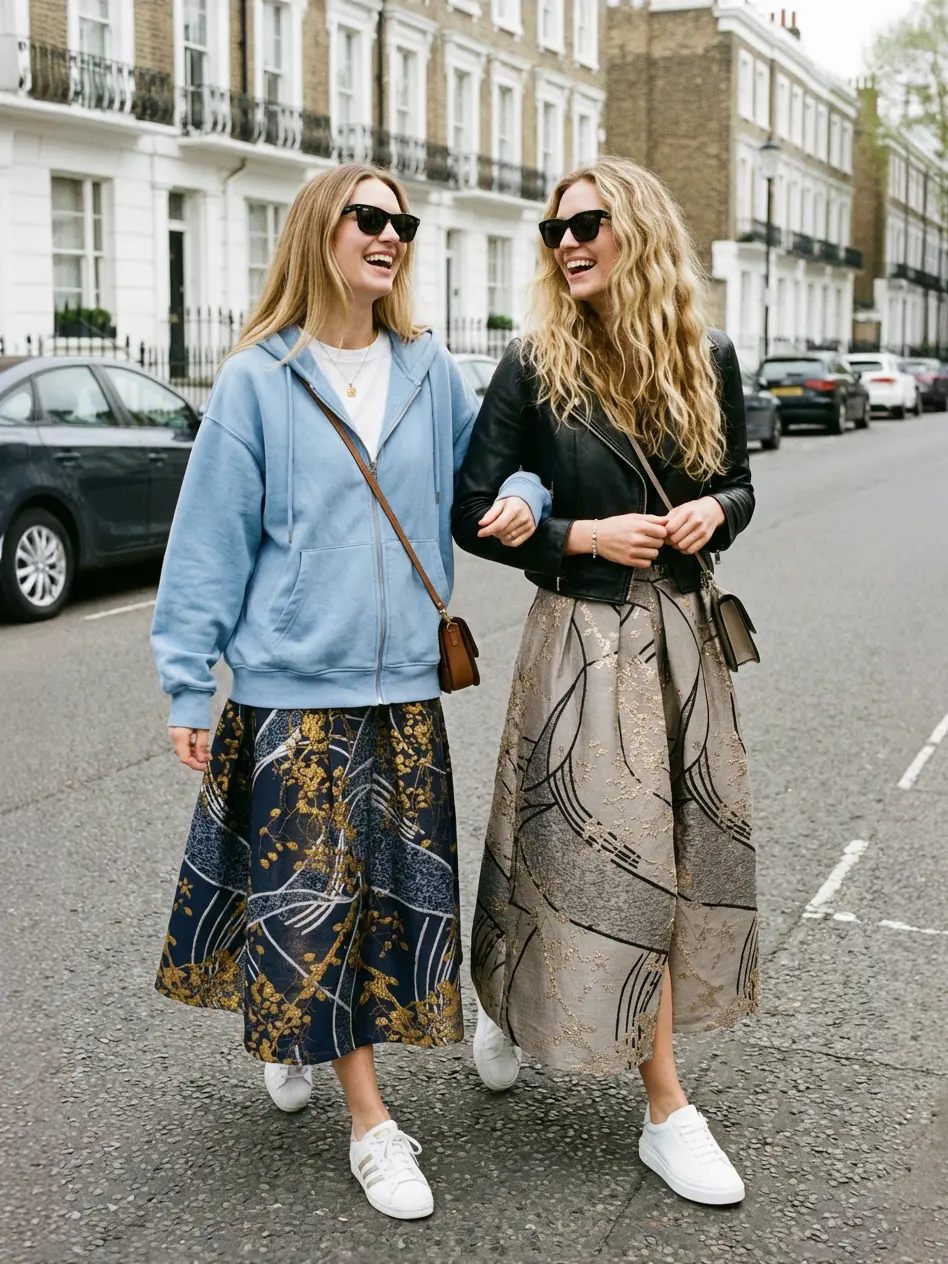 Yırtmaç açıldığında ortaya çıkan iç kat, mini etek görünümü yaratarak parçaya katmanlı ve iddialı bir karakter kazandırır.